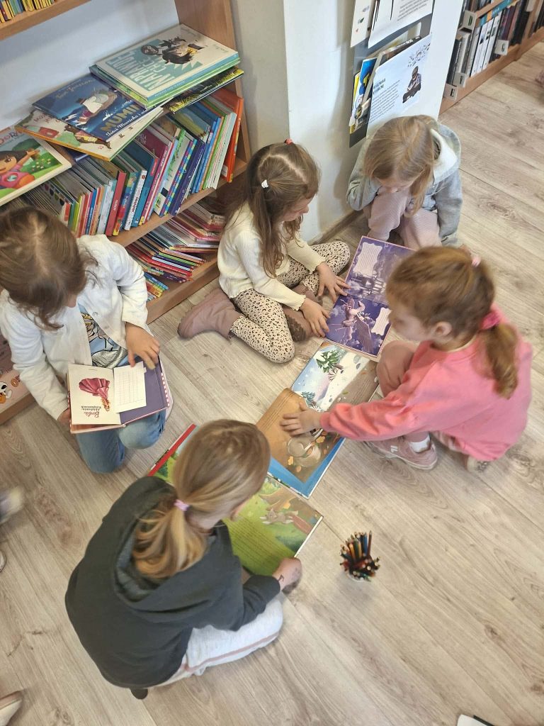 Dziś w Lubniu przeczytałyśmy książkę o sympatycznym Przytulozaurze oraz o Róży i Józefinie, które wybrały się na poszukiwanie księcia z bajki (zamiast na niego czekać) 🙂